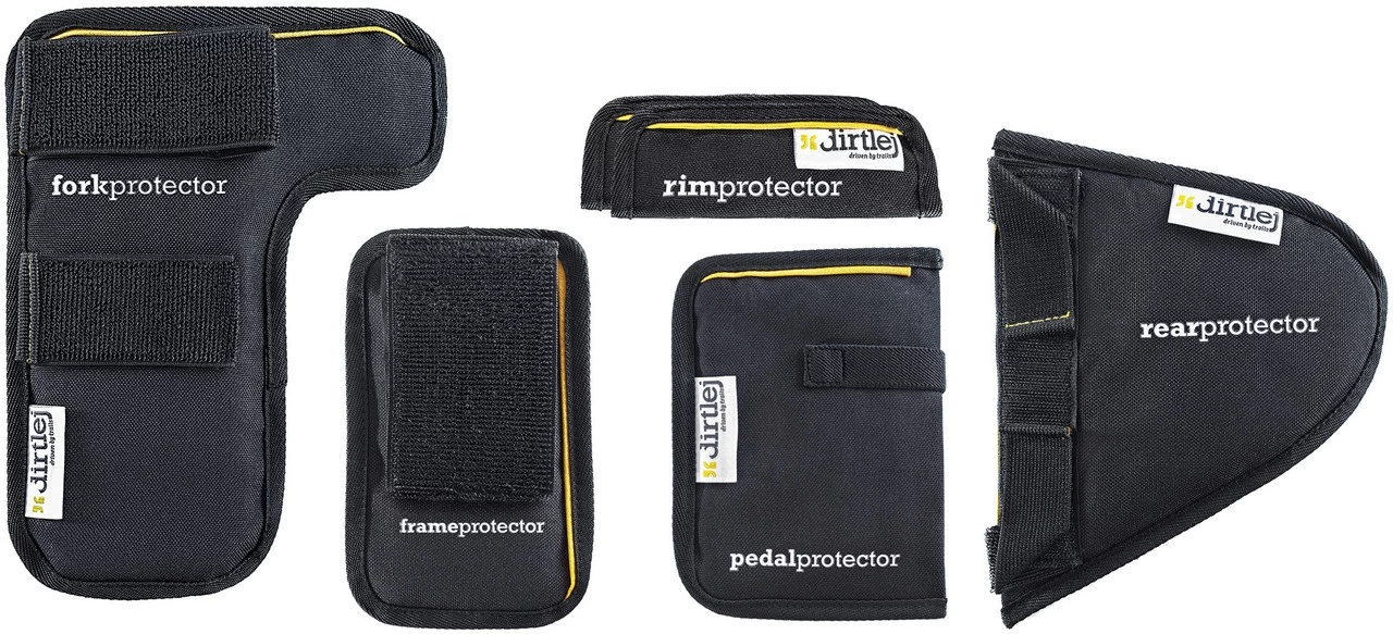 Lieferumfang:1 x Federgabelschutz dirtlej1 x Hinterbauschutz dirtlej1 x Rahmenschutz dirtlej1 x Pedalschutz dirtlej2 x Felgen-/ Reifenschutz dirtlej