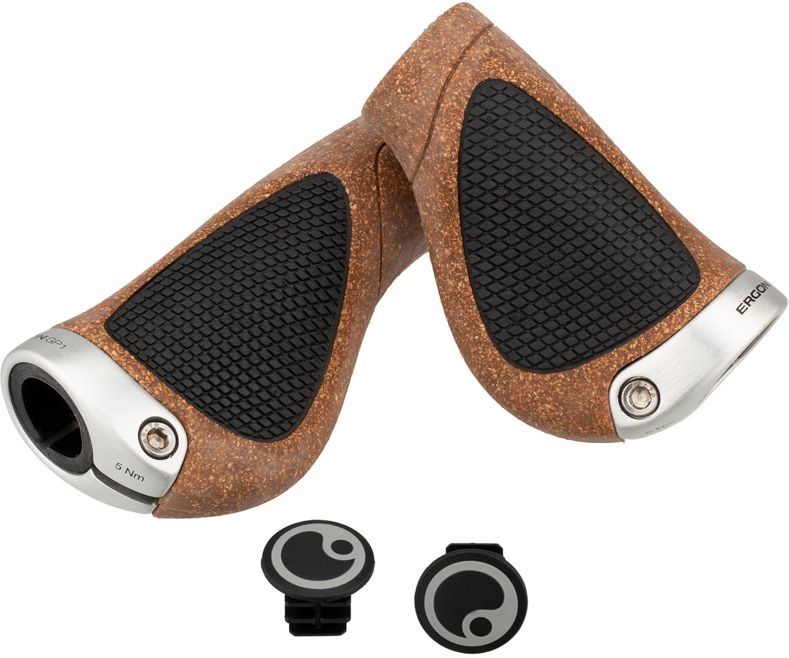 Greifumfang:102 mmHandgröße:8,5 – 10,5 mmLieferumfang:1 Paar Lenkergriffe Ergon GP1 BioKork1 Paar Lenkerendstopfen Ergon
