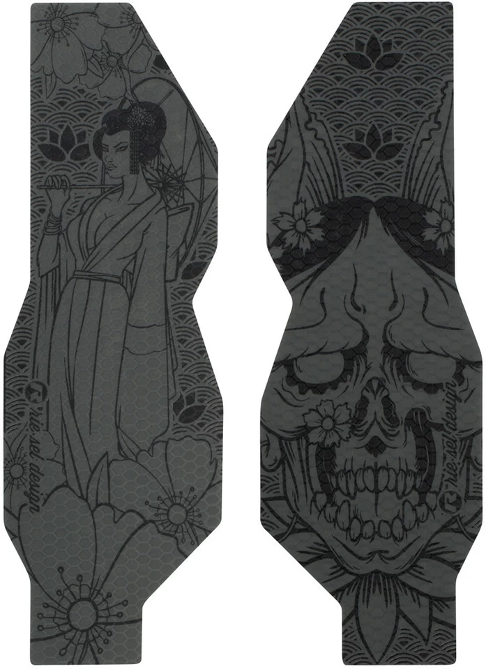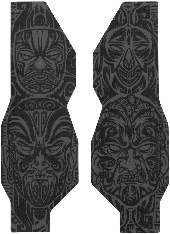 Features:zwei Shapes von je 82 x 247 mmaus unverwüstlichem Honeycomb MaterialselbstklebendFarben verblassen nichtnur 23 g GesamtgewichtHerstellernummern:dazzl:T3-FK004camo:T3-FK003maori:T3-FK005japan:T3-FK006clear:T3-FK002stickerbomb:T3-FK001Lieferumfang:1 x Gabelschutz Set rie:sel fork:TAPE 3000