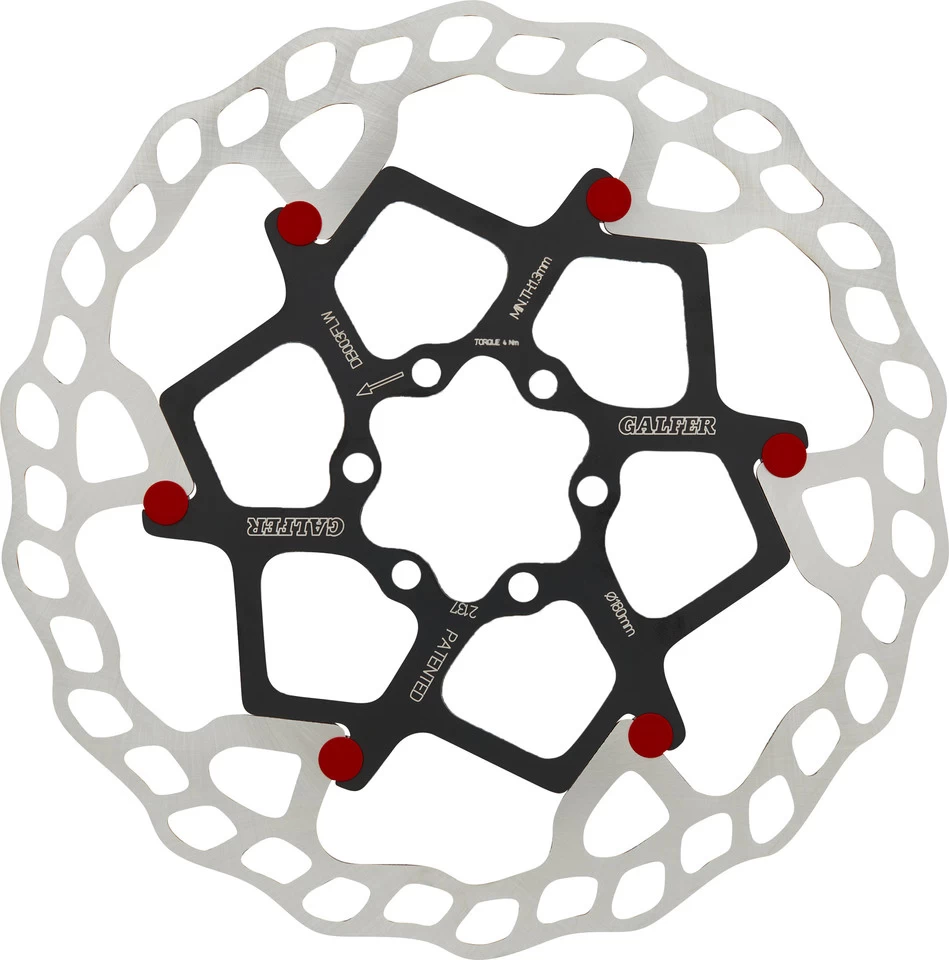 Die GALFER Floating Disc Wave Bremsscheibe mit 1,8 mm Dicke und 6-Loch-Aufnahme für Mountainbikes zeichnet sich durch ein schwimmend gelagertes Design aus. Die Bremsfläche kann sich unter Hitze frei ausdehnen und zusammenziehen, was reduzierte Vibration zur Folge hat. Außerdem entsteht eine thermische Barriere zur inneren Konstruktion, dies verbessert das Temperaturmanagement.