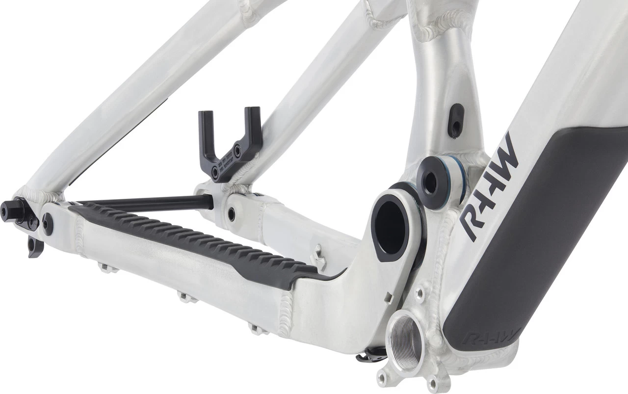 Das RAAW Mountain Bikes Jibb Rahmenkit für 29″ bildet hier ein Traum-Trio mit einem TTX 22 M Coil Stahlfederdämpfer und einer RXF36 m.2 Federgabel von ÖHLINS. Damit erhältst Du die Hauptbestandteile für ein spielerisches Bike auf All-Mountain- und Enduro-Trails. Bei der Federgabel mit 36 mm Standrohrdurchmesser stellst Du High- und Low-Speed-Druckstufe ein, Unebenheiten schluckt sie einfach weg. Der Stahlfederdämpfer bietet Dir ebenfalls die Einstellung von High- und Low-Speed-Druckstufe und liefert optimale Leistung mit hoher Traktion. Wie schon beim Madonna V2.2 setzen RAAW auch beim Jibb jetzt auf ein eigenes Steckachssystem, welches die Steifigkeit erhöht und das Lockern der Achse während der Fahrt verhindert. Das Rahmendesign unterstützt einen aktiven Fahrstil und verleiht Dir Selbstvertrauen und Kontrolle. Die ausgewogene Geometrie ermöglicht eine zentrale Sitzposition und sorgt für ausreichend Traktion. Beim Jibb ist dieselbe Detailverliebtheit erkennbar wie beim Geschwisterbike Madonna. So ist beispielsweise auch beim Jibb die Bremsaufnahme ein eigenes Bauteil. Für verschiedene Bremsscheibengrößen benötigst Du also keine zusätzlichen Adapter und die präzise Ausrichtung des Bremssattels ist kein Problem. An zwei Schraubgewinden am Oberrohr kannst Du eine Zubehörtasche (nicht im Lieferumfang) für Werkzeug und Ausrüstung befestigen, so hast Du das Wichtigste immer dabei. Die Dämpferhardware wird bereits mitgeliefert, sodass Du keine Einbaubuchsen benötigst. Mit Steckachse, Acros Steuersatz, Sattelklemme und Schutzfolien-Kit hast Du bereits die Basics für Deinen Aufbau parat.