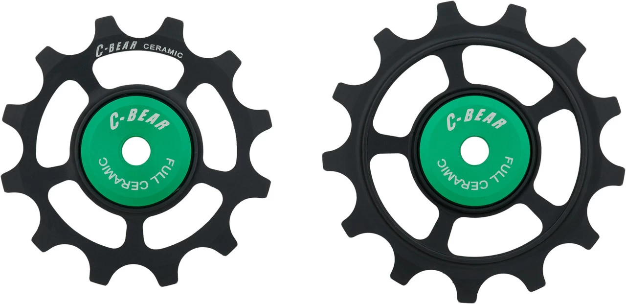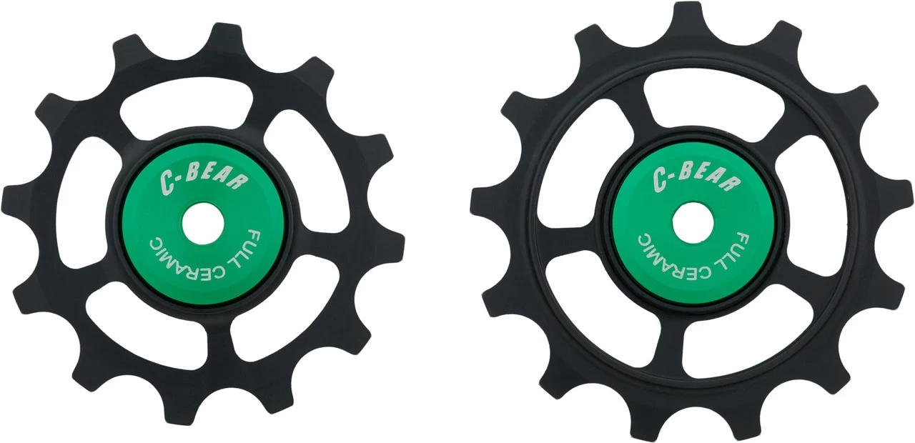 Die OCM SRAM AXS Road Schalträdchen von C-BEAR arbeiten mit Keramiklagerkugeln, die in Stahlrinnen laufen. Sie sind kompatibel mit den elektronischen Red und Force 12-fach Schaltwerken und sind größer als die Original-Schaltröllchen. Damit lässt sich die Performance Deines Antriebs deutlich erhöhen.