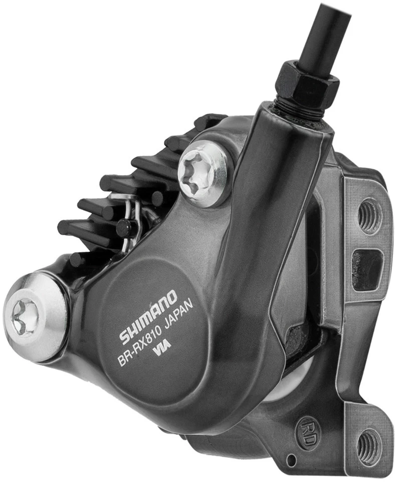 Die Shimano GRX BR-RX810 + Di2 ST-RX815 Scheibenbremse verhilft zu mehr Bremskontrolle auf gemischtem Terrain. Der GRX Bremssattel BR-RX810 mit Ice Technologies sorgt für perfekte Hitzeverteilung. Hinzu kommen die simple Einweg-Entlüftung und das unkomplizierte Schlauchanschlusssystem. Das Design des Bremssattels beruht auf der Flat-Mount-Konstruktion, die sich nun schon seit einigen Jahren im Rennrad-Bereich etabliert hat.