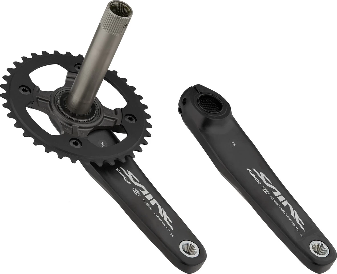 Spezifikationen:Einsatzbereich:Downhill, EnduroKompatibilität:Shimano 1×10-fachKettenblattbefestigung:104 mm Lochkreis, 4-ArmTechnische Daten:Serie:Saint M820Material Kurbelarme:AluminiumMaterial Kettenblätter:AluminiumMaterial Achse:StahlAbstufung:36 ZähneKurbelarmlänge:165,0 mm, 170,0 mm, 175,0 mmKettenlinie:50,4 mmQ-Faktor:178 mmAchsdurchmesser:24 mmKompatible Gehäusebreite (bei BSA-Innenlager):68 mm / 73 mmInnenlager:SM-BB80 Hollowtech IIKette (empf.):HG-X 10-fach (bspw. CN-HG95)Kompatibilität:Einbaubreite hinten: