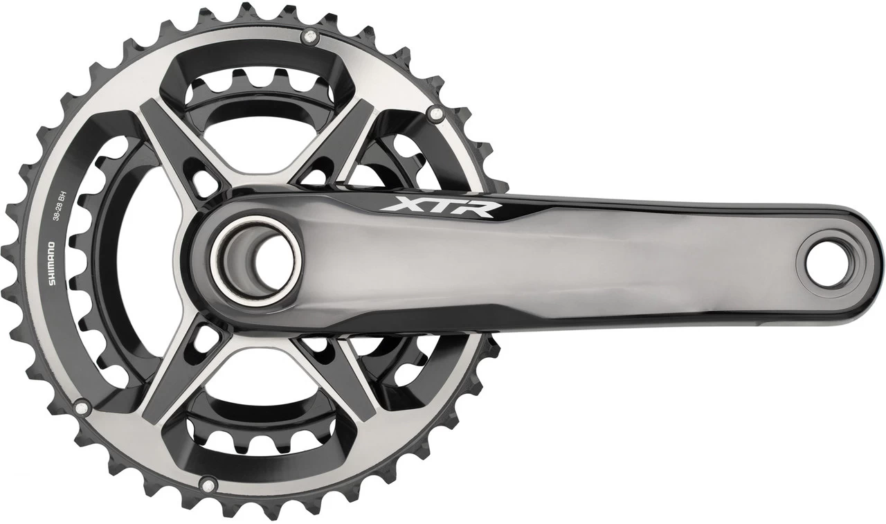 Die Shimano XTR XC FC-M9100-2, die inklusive TL-FC41 Kettenblattwerkzeug ausgeliefert wird, ist eine Kurbelgarnitur für den Cross-Country-Einsatz mit zwei Kettenblättern. Dabei wird das große Kettenblatt nach dem Direct-Mount-Prinzip installiert. FC-M9100-2 hat einen schmaleren, renntauglichen Q-Faktor von 162 mm und ist nur für den Einsatz mit 12-fach Antrieben vorgesehen. Das Modell richtet sich an Fahrer, denen es in unbekanntem Gelände mit möglicherweise steilen Ansteigen auf Flexibilität und eine größtmögliche Bandbreite ankommt. Die Aluminium-Kurbel verfügt natürlich auch über die seit Jahren bewährte Hollowtech-II-Konstruktion, die zwischen der Festigkeit der Kurbelarme, der Steifigkeit der Achse und dem Gewicht ein optimales Verhältnis herstellt.