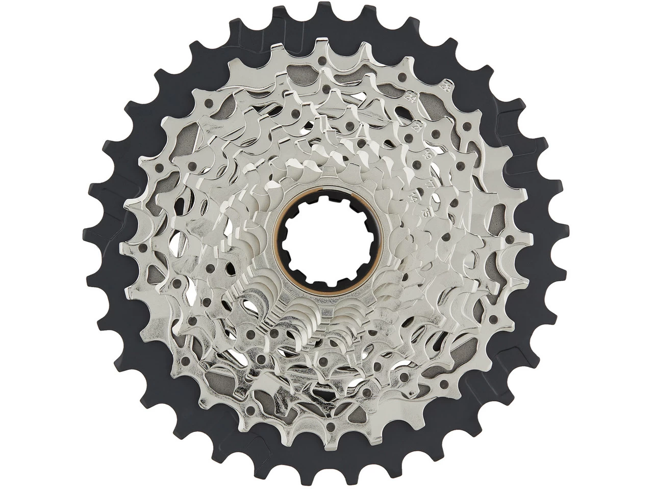 Spezifikationen:Einsatzbereich:Road, Gravel, CyclocrossSchaltstufen:12-fachAbstufungen:10-28, 10-33, 10-36Material Ritzel:Stahl (Ritzel 1 – 11), Aluminium (Ritzel 12)Freilaufkompatibilität:SRAM XDRKompatibilität:10-36 Zähne nur kompatibel mit passendem Force eTap AXS Schaltwerk mit mittellangem KäfigFeatures:gleichmäßigere Gangabstufung durch mindestens drei Gangsprünge mit nur jeweils einem Zahn UnterschiedAnfangsritzel mit 10 Zähnen für größeren ÜbersetzungsbereichMINI CLUSTER-Konstruktion für reduziertes Gewicht und höhere HaltbarkeitVariante 10-36 für größte BandbreiteTechnologien:AXS™: