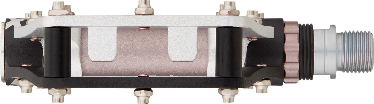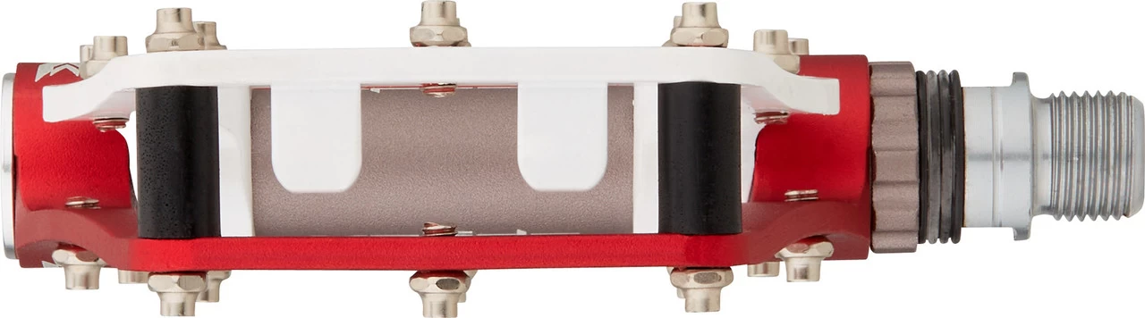 Spezifikationen:Einsatzbereich:BMX, MTBAusführung:PlattformpedaleTechnische Daten:Material Pedalkörper:Aluminium 6061 (CNC-bearbeitet)Material Achse:CrMo StahlGröße:99 x 100 x 22 mmGewinde:9/16“Lagerung:PatronenlagerDichtung:einfach, GummiPins:20 pro Seite, austauschbarSonstiges:MCU-Elastomere absorbieren Fahrvibrationen und schonen die GelenkeHerstellernummern:schwarz-silber:XMX18AC blackrot-weiß:XMX18AC redblau-gold:XMX18AC blue/goldFarbindex:Unsere Farbangabe bezieht sich auf die jeweils zweifarbig ausgeführte Plattform.
