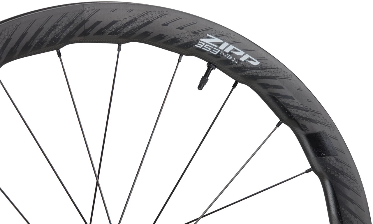 Der Zipp 353 NSW Disc ist ein sehr aerodynamischer Rennrad-Laufradsatz mit bis zu 45 mm hohen und 25 mm breiten, hakenlosen Tubeless-Felgen aus Carbon sowie dem überarbeiteten Cognition V2 Nabenset. Dabei sorgt der Axial Clutch V2 Freilauf für schnelleren Kraftschluss und reduzierte Reibung. Die Laufräder wiegen nur ca. 1250 g, was sie zusammen mit ihrer Seitenwindstabilität und ihrer Geschwindigkeit für Puncheure und Fluchtgruppenspezialisten interessant macht.